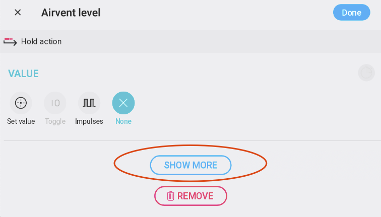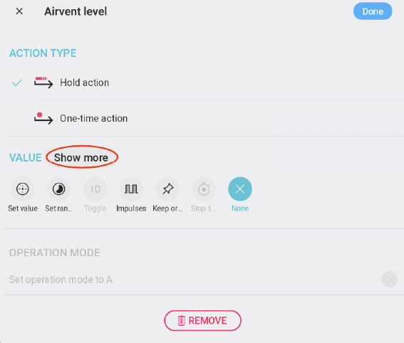 Valore - impostazioni dell’azione solo per la parte Valore del dispositivo